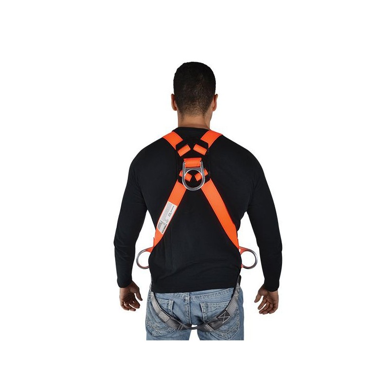 Equipo anticaídas de cuerpo completo tipo chaleco, su diseño permite distribuir el impacto en caso de desplome, cuenta con sistema de restricción de posicionamiento y 3 aros de sujeción 1 en la espalda y 1 en cada lado de la cintura, fabricado con los más altos estándares de ergonomía, cuenta con hebillas reguladoras de ajuste. Etiquetado para hacer sus revisiones periódicas y anotaciones sobre la misma.